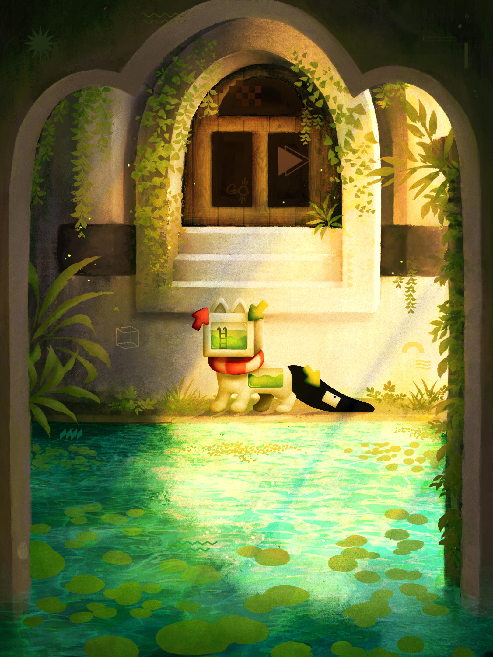 A second glance at this dense vegetation reveals the remains of a ghost town. Aside from a few cleared trails between the buildings, traveling outside is near impossible.Despite the abundant plant life, no animals can be found; Just endless green and rustling leaves make the only sound. This eerie silence is only broken at night by the droning of insects and fluorescent lights.If you dare to venture out into kudzu, just be sure to make it back by nightfall; You don’t know what may be out there, lurking in the dark…